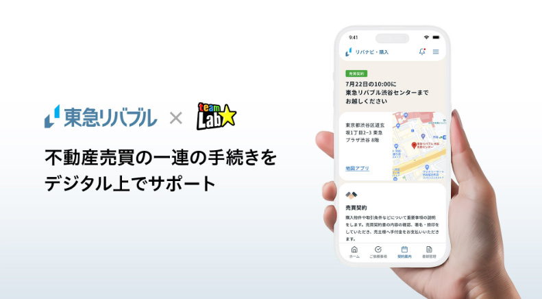 東急リバブル株式会社(本社:東京都渋谷区、代表取締役社長:小林 俊一)は、当社の仲介で不動産を購入・売却される個人のお客様向けに、売買契約の締結から決済・引渡し後までの一連の手続きにおいて、デジタル上(パソコン・スマートフォン)で資料の確認や各種申込みができる新サービスシステム『リバブルサポートナビ』を、チームラボ(本社:東京都千代田区、代表:猪子 寿之)と共同開発しました。